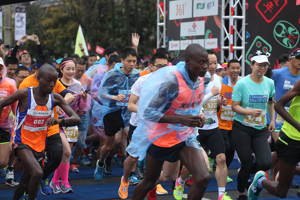 本屆賽事起點位于鳳凰體育場,途經(jīng)宣化門、熊貓谷和都江堰市人民政府傾力打造的天府綠道、環(huán)山旅游線(熊貓綠道),馬拉松終點為“世界文化遺產(chǎn)”青城山。來自29個國家和地區(qū)的3萬名跑者踏上最美賽道,起跑前他們高聲齊唱《歌唱祖國》和《我和我的祖國》,現(xiàn)場氣氛十分燃!天下著小雨,跑馬人熱情不減。今年是成都雙遺馬拉松連續(xù)開跑第五年,五年奔跑歷程,今年的成都雙遺馬拉松更別具意義。