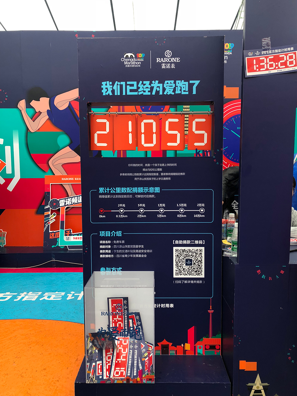 值得一提的是,今年雷諾表還為成都雙遺馬拉松的跑者們賦予了一種新式公益方式:參賽者只需填寫時間卡并提交至雷諾表展區(qū),所有捐贈者累積達到一定數(shù)值,雷諾表將捐贈相應(yīng)的款項給涼山貧困孩子,用以學(xué)生交通補貼。按照最終累積的公里數(shù),雷諾表將為山區(qū)貧困兒童捐助5000元,傳達跑馬人的一份愛心。