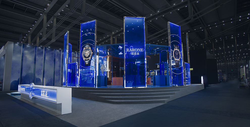 外墻8塊2米高藍(lán)色通透亞克力分別展示雷諾表自創(chuàng)立以來(lái),從高端制表工藝、創(chuàng)新性用料到質(zhì)量標(biāo)準(zhǔn)認(rèn)證等多個(gè)維度的代表性表款。其中最具代表性的是,2012年孫紅雷先生親自參與設(shè)計(jì)的騎士系列,完美的演繹了雷諾表創(chuàng)新性與個(gè)性化的腕表設(shè)計(jì)。