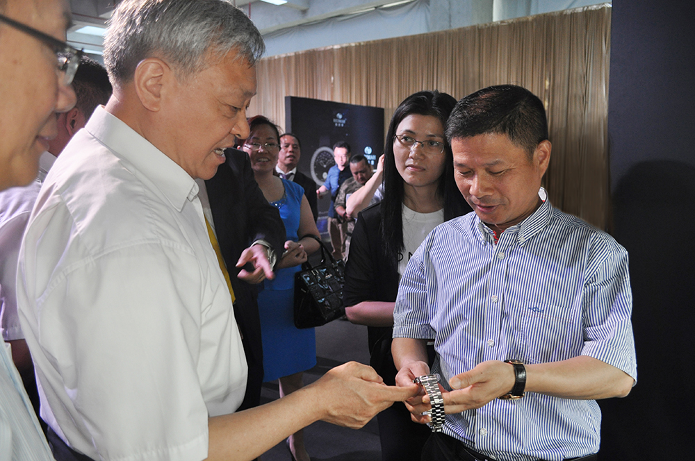活動現(xiàn)場,深圳市相關(guān)領(lǐng)導(dǎo)及鐘表行業(yè)協(xié)會領(lǐng)導(dǎo)、各品牌高層一同為文博會鐘表分會場揭幕,并參觀鐘表展覽區(qū)。雷諾表作為商務(wù)手表品牌,攜騎士商務(wù)系列、博鰲··鼎智系列、夜色系列在6號展位亮相。政委領(lǐng)導(dǎo)參觀雷諾展區(qū)時,對雷諾表春秋系列贊譽有加,并鼓勵雷諾表挖掘更多中國傳統(tǒng)文化精髓,將鐘表技術(shù)與中國傳統(tǒng)文化相結(jié)合,引領(lǐng)鐘表新潮流。